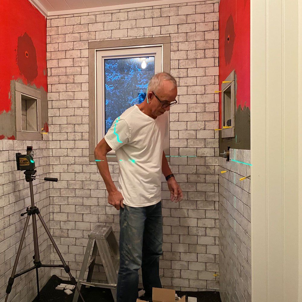 Dolf and I just completed a few of our own interior home renovation projects over the winter. Check out Dolf hard at work on our bathroom re-model...